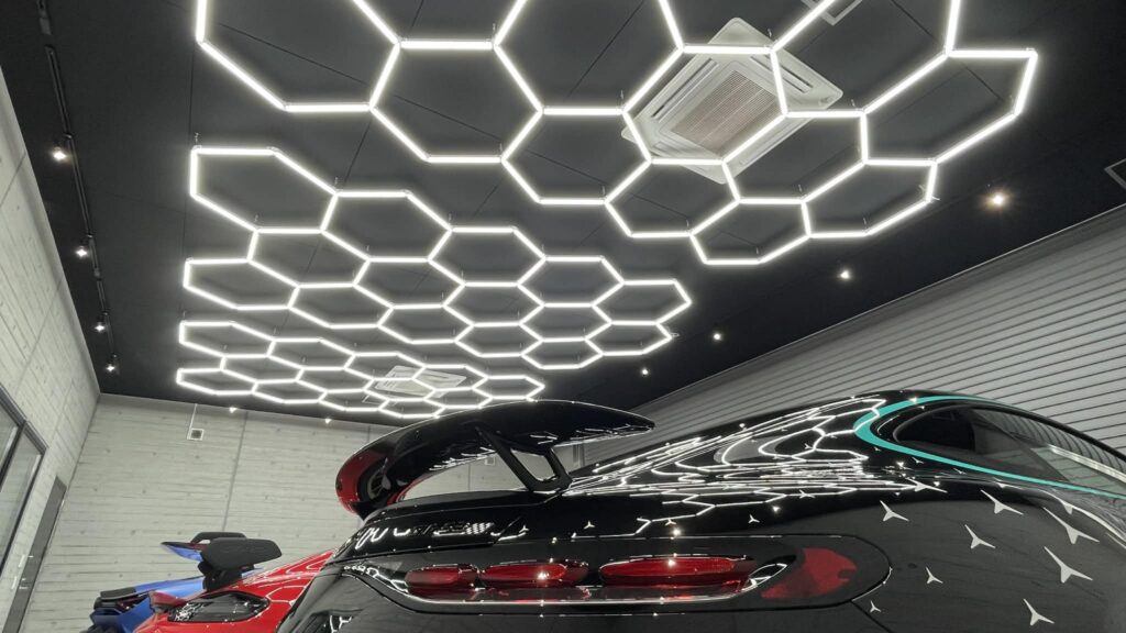 照明設備も複数のハニカム構造のライトを設置しています。傷は塗装の色や深さにより光の